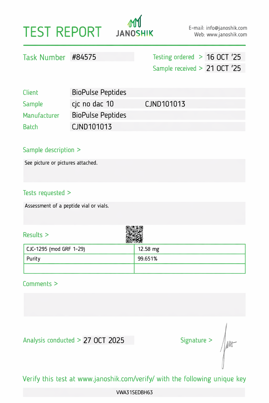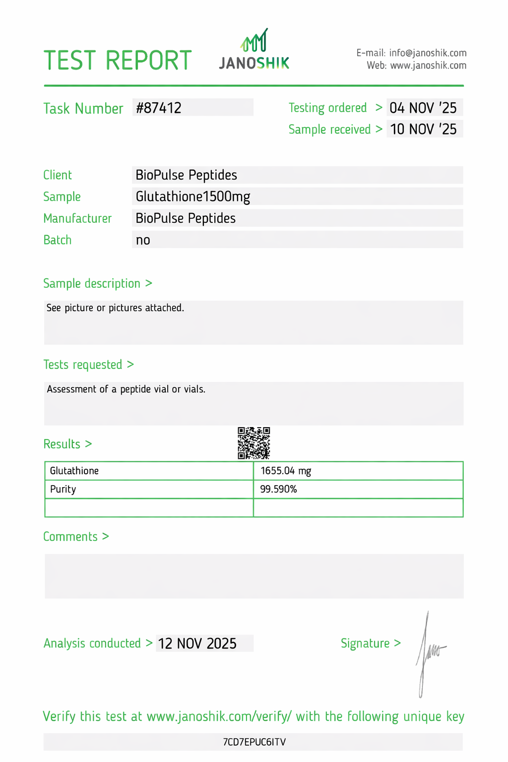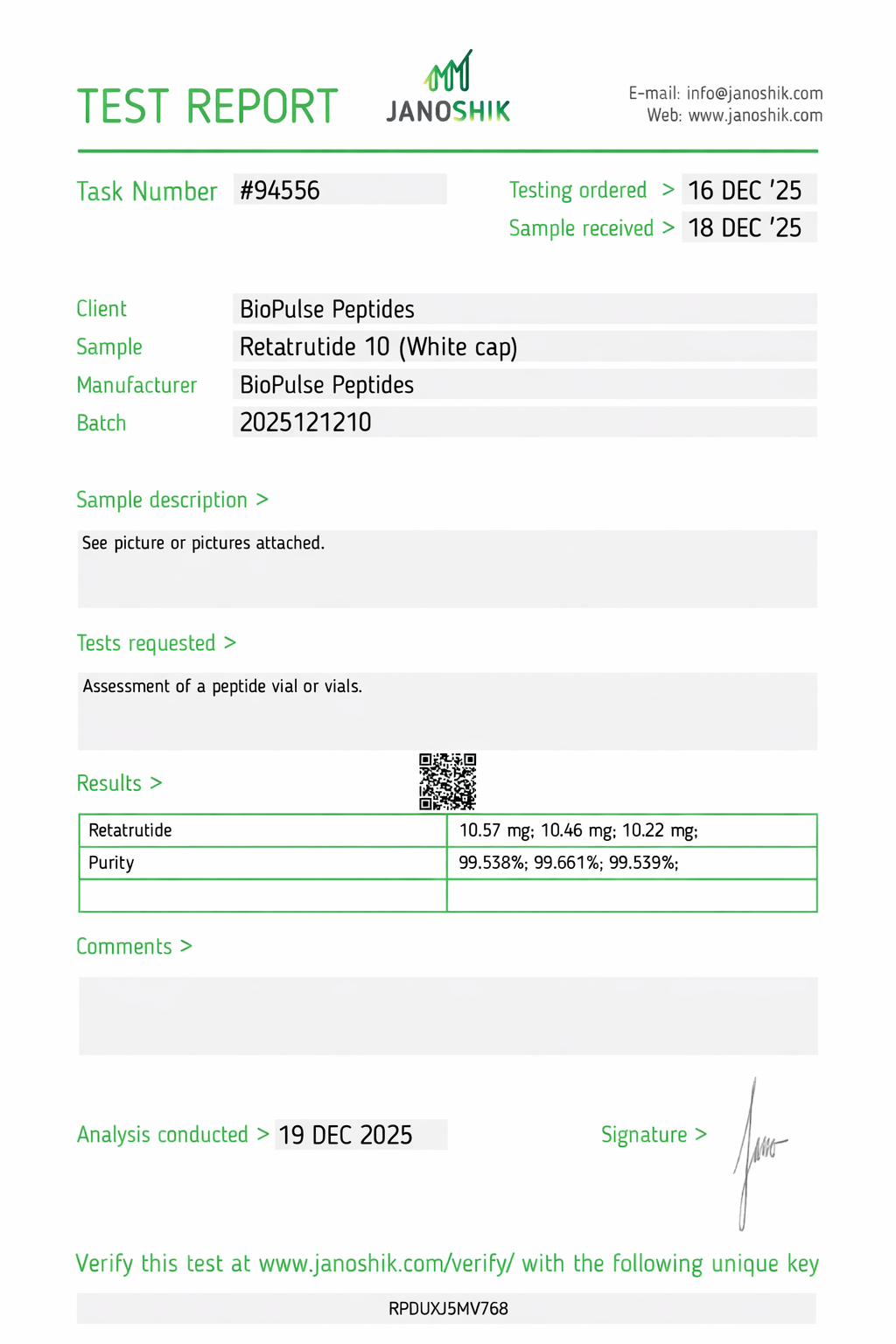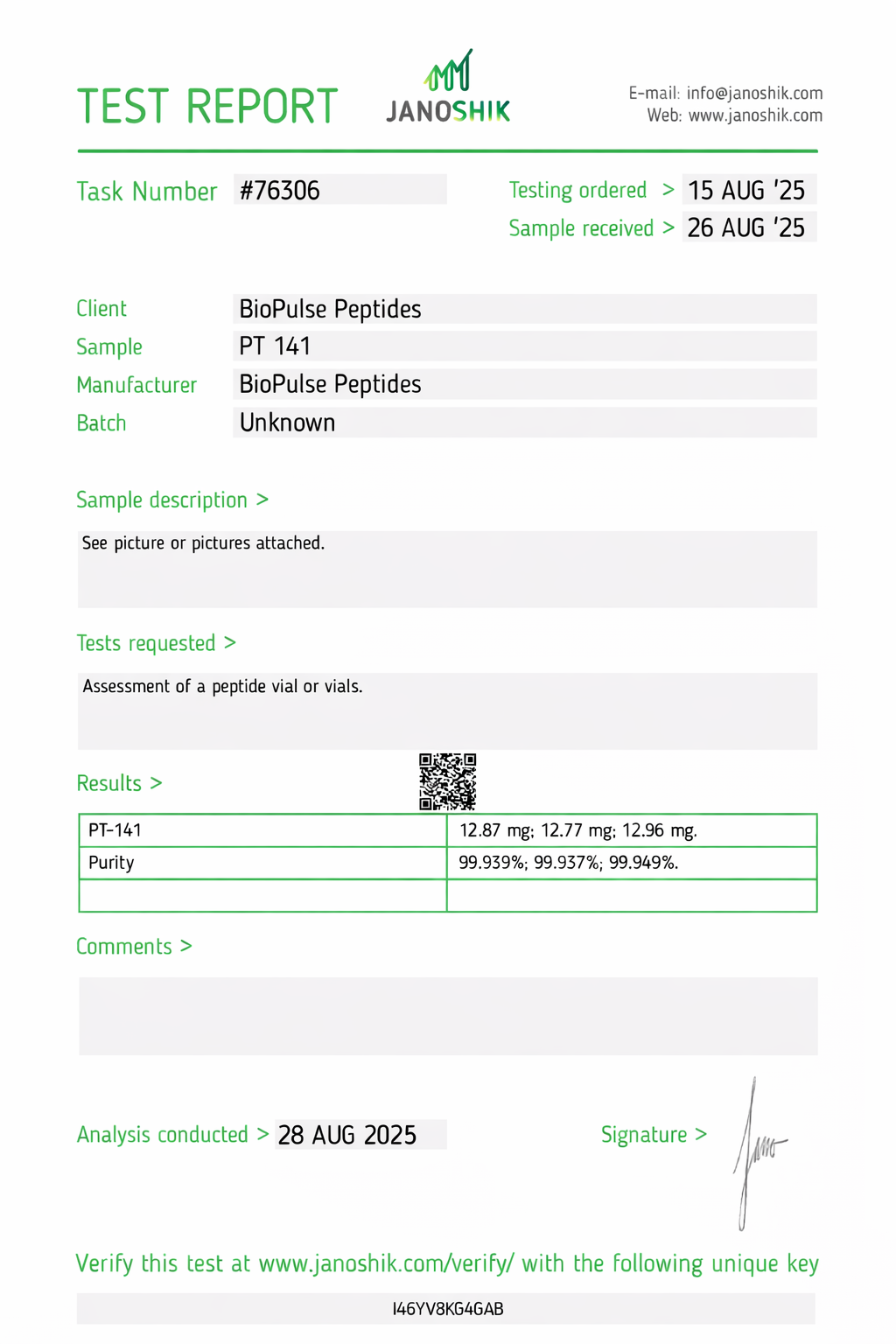 All BioPulse Peptides products are tested by independent third-party laboratories prior to release to ensure research-grade standards are met.