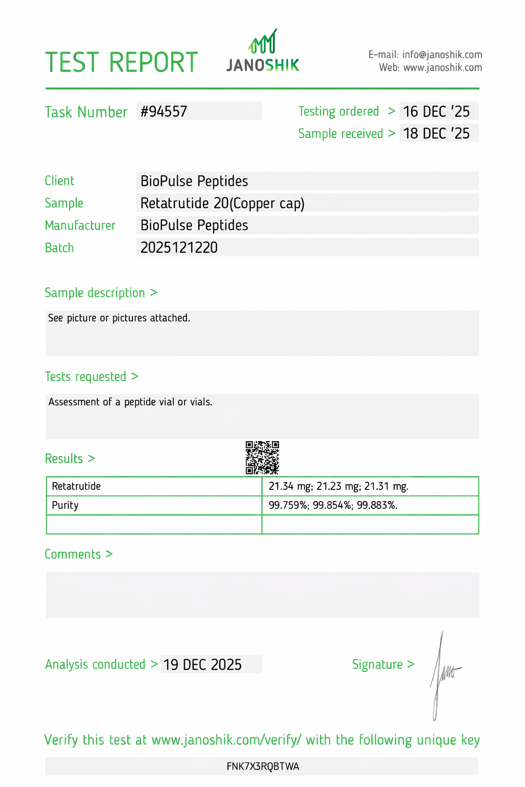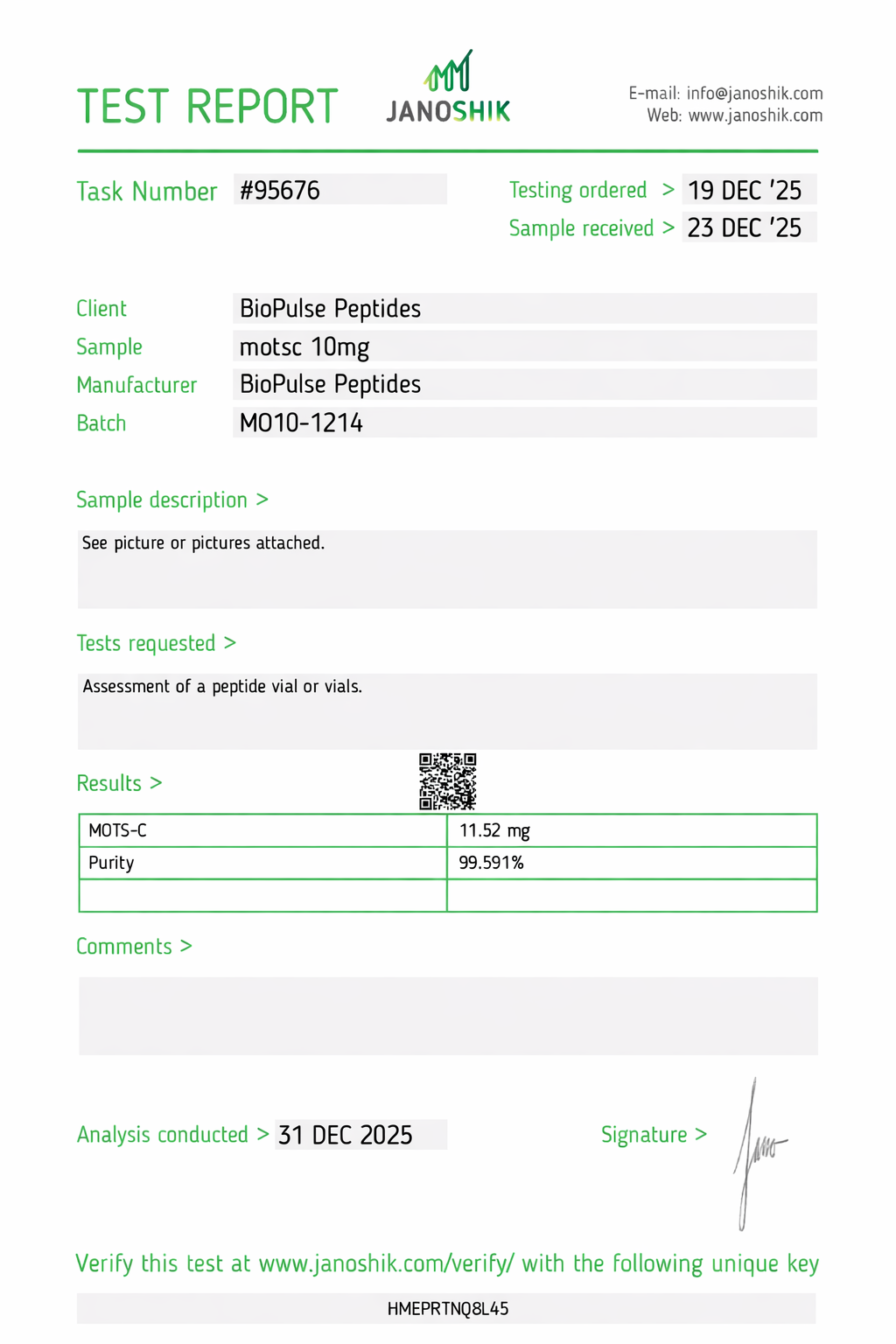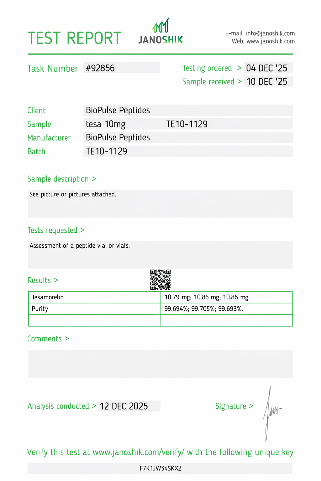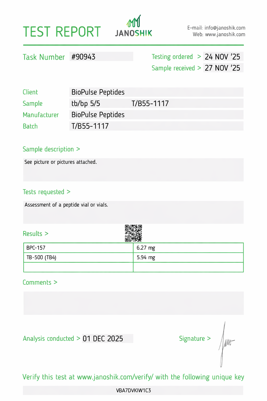 All BioPulse Peptides products are tested by independent third-party laboratories prior to release to ensure research-grade standards are met.