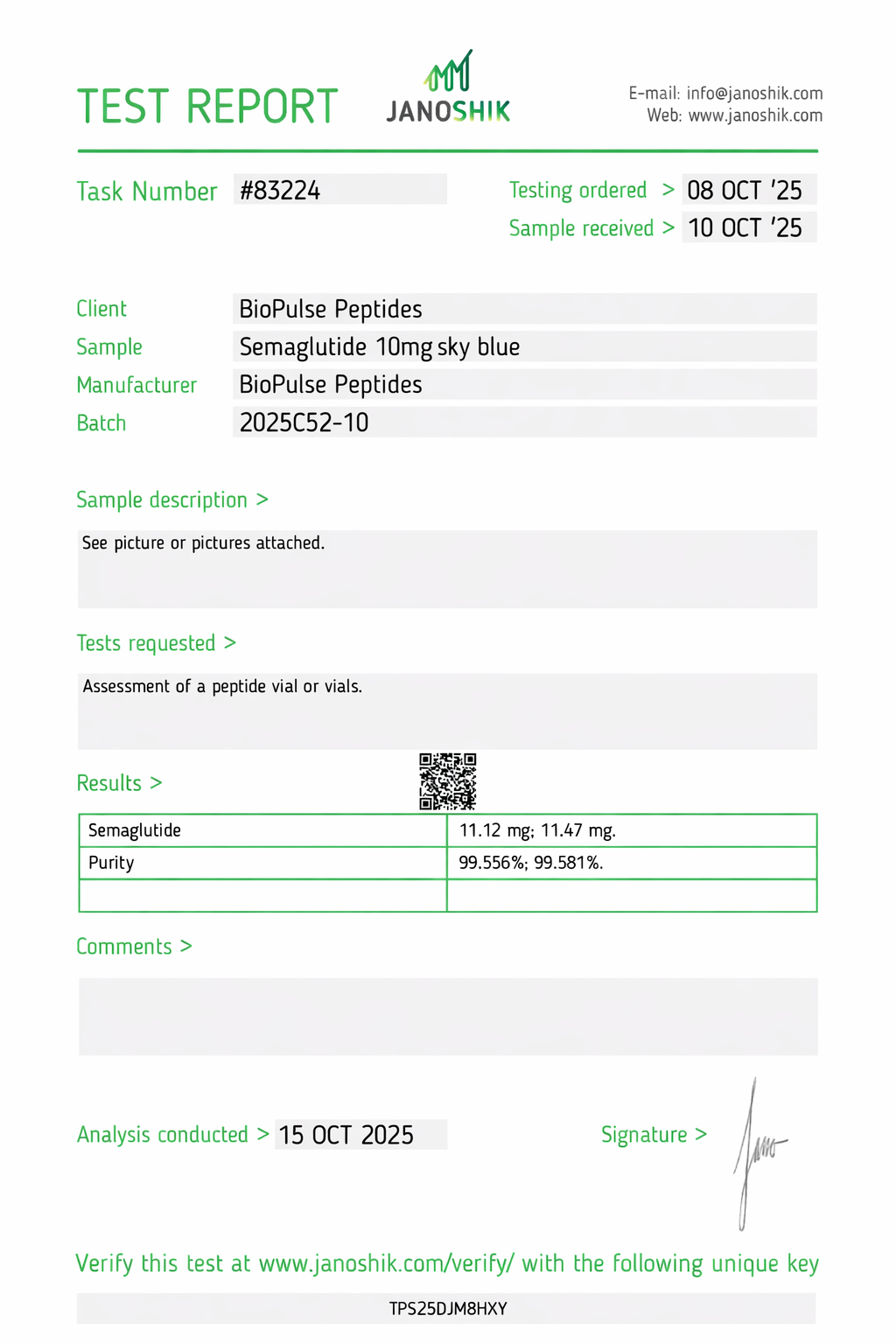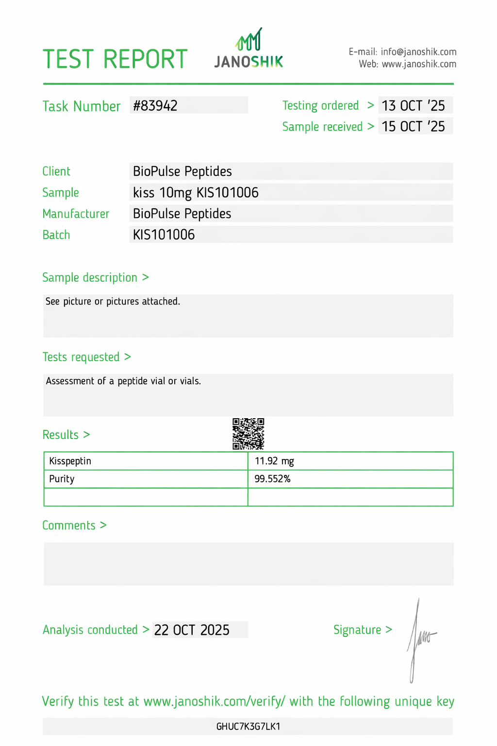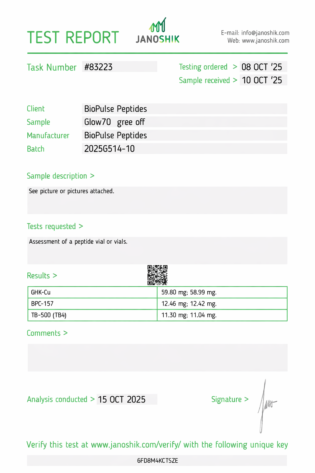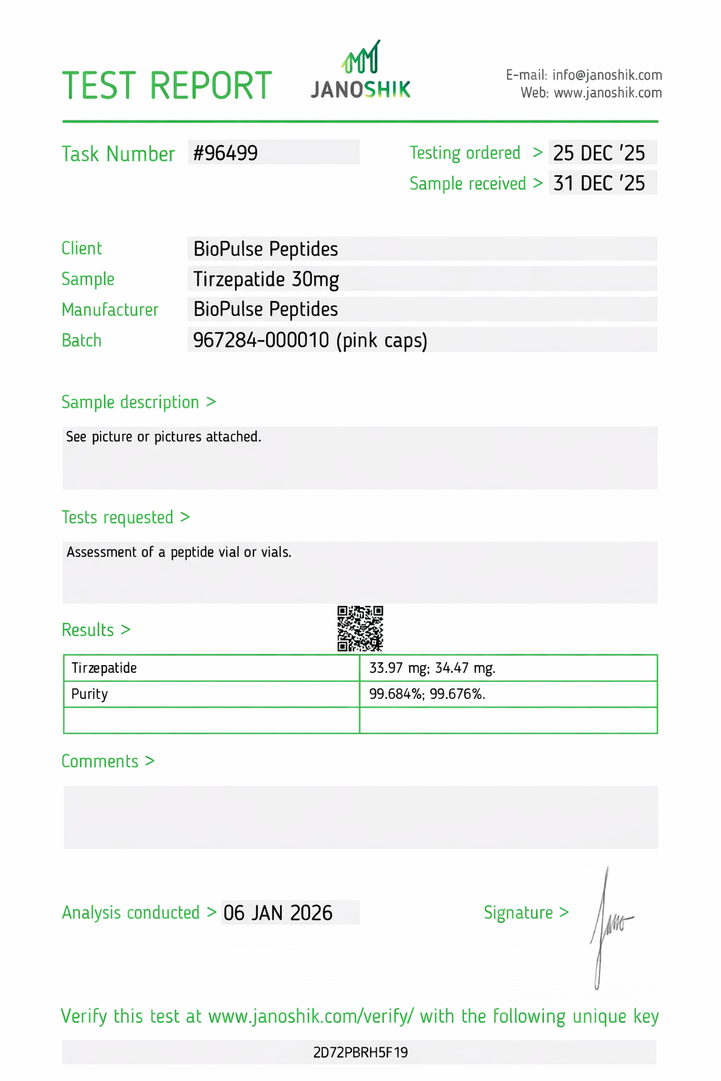All BioPulse Peptides products are tested by independent third-party laboratories prior to release to ensure research-grade standards are met.