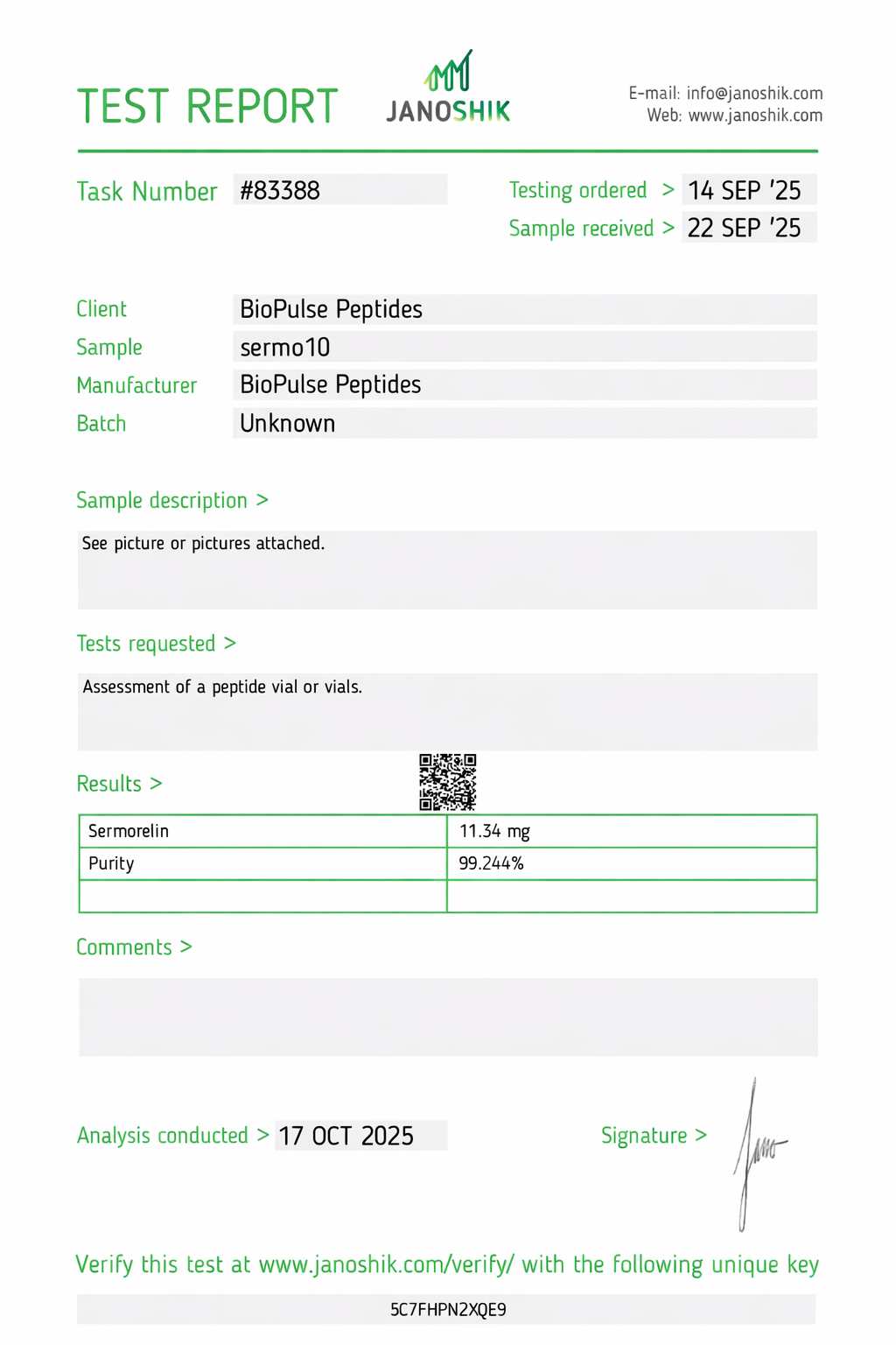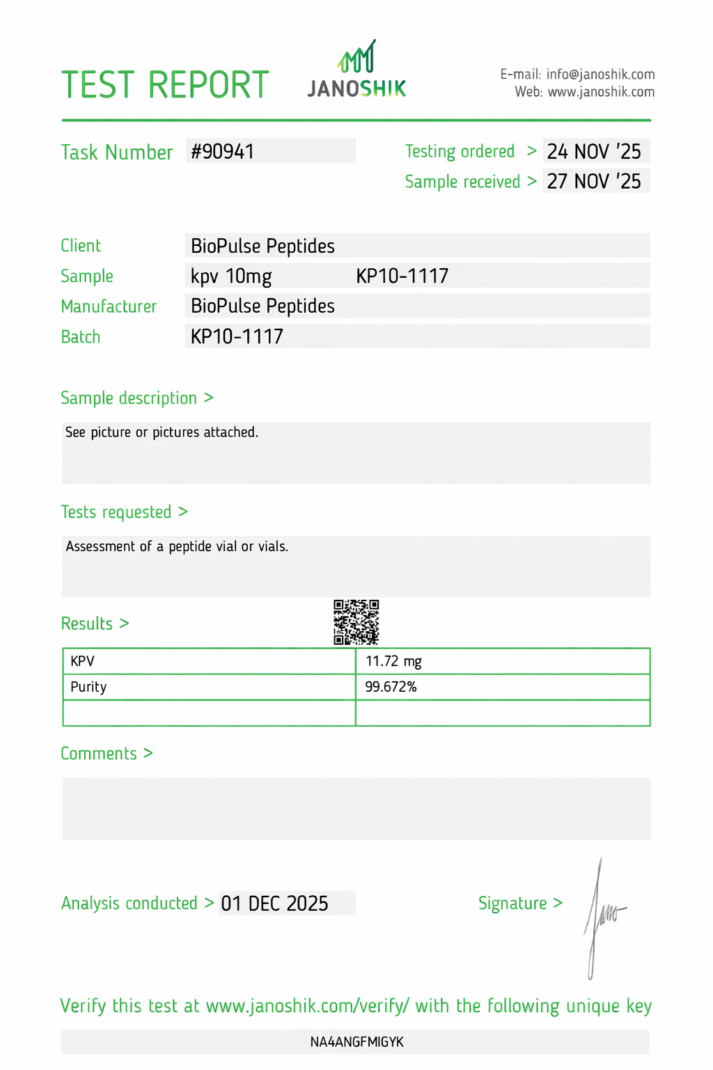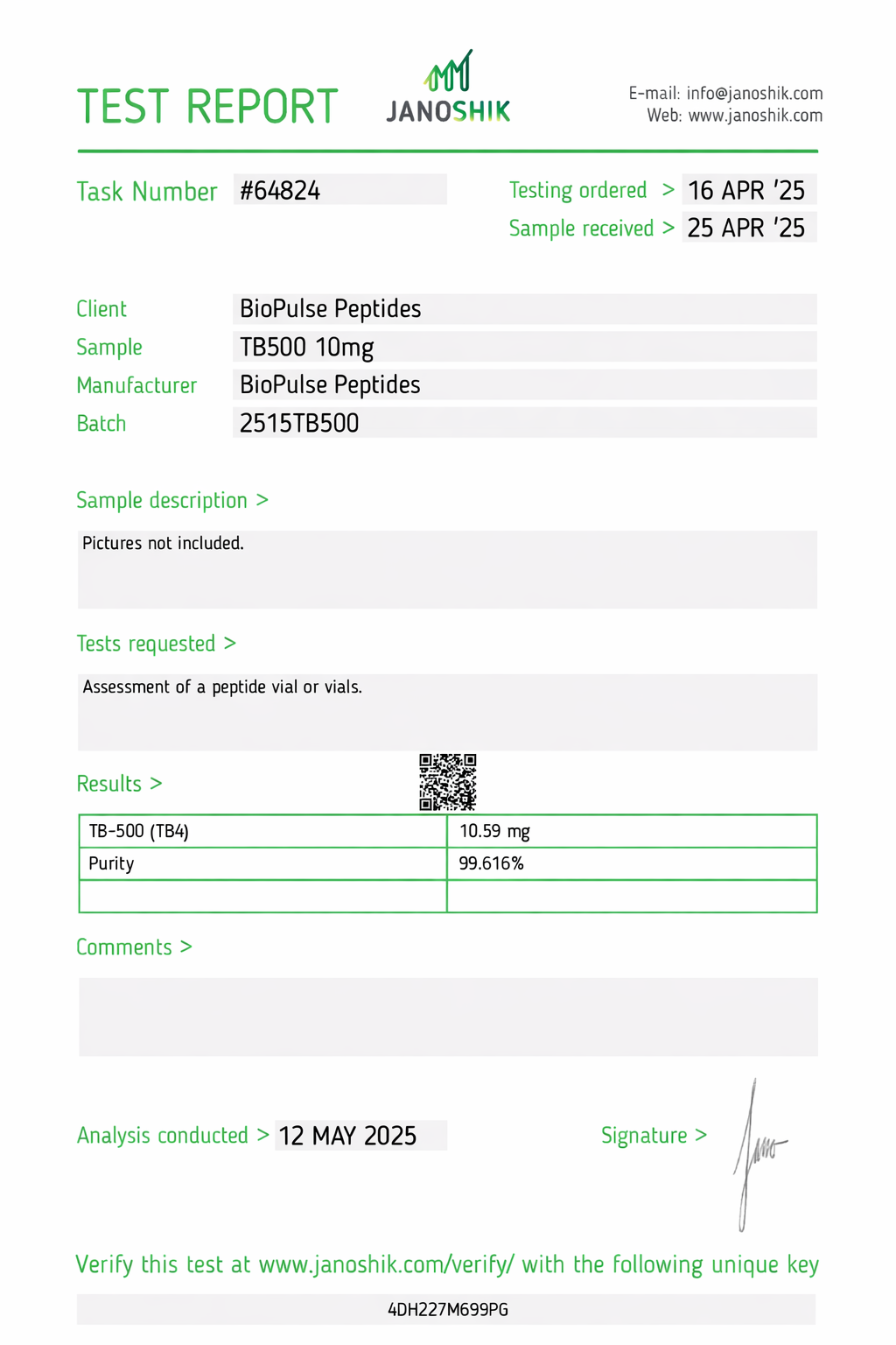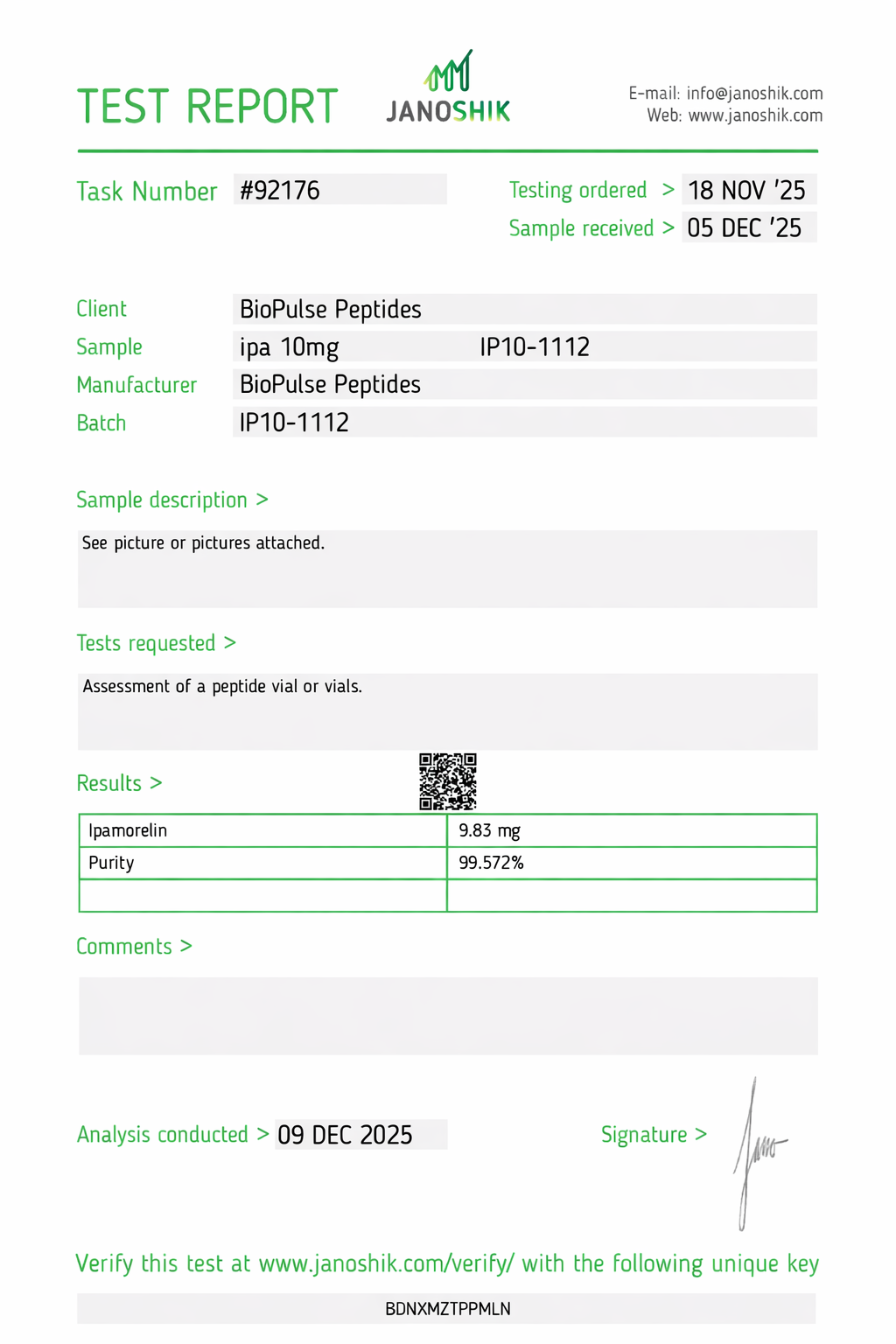 All BioPulse Peptides products are tested by independent third-party laboratories prior to release to ensure research-grade standards are met.